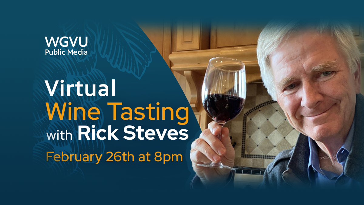 Virtual Wine Tasting with Rick Steves Go on a wine tasting adventure with Rick Steves as your travel guide! Join Rick and a sommelier as you sip your way through 6 different European wine varietals. Secure your ticket when you make a one-time gift to WGVU and select this as your "Thank You" gift!